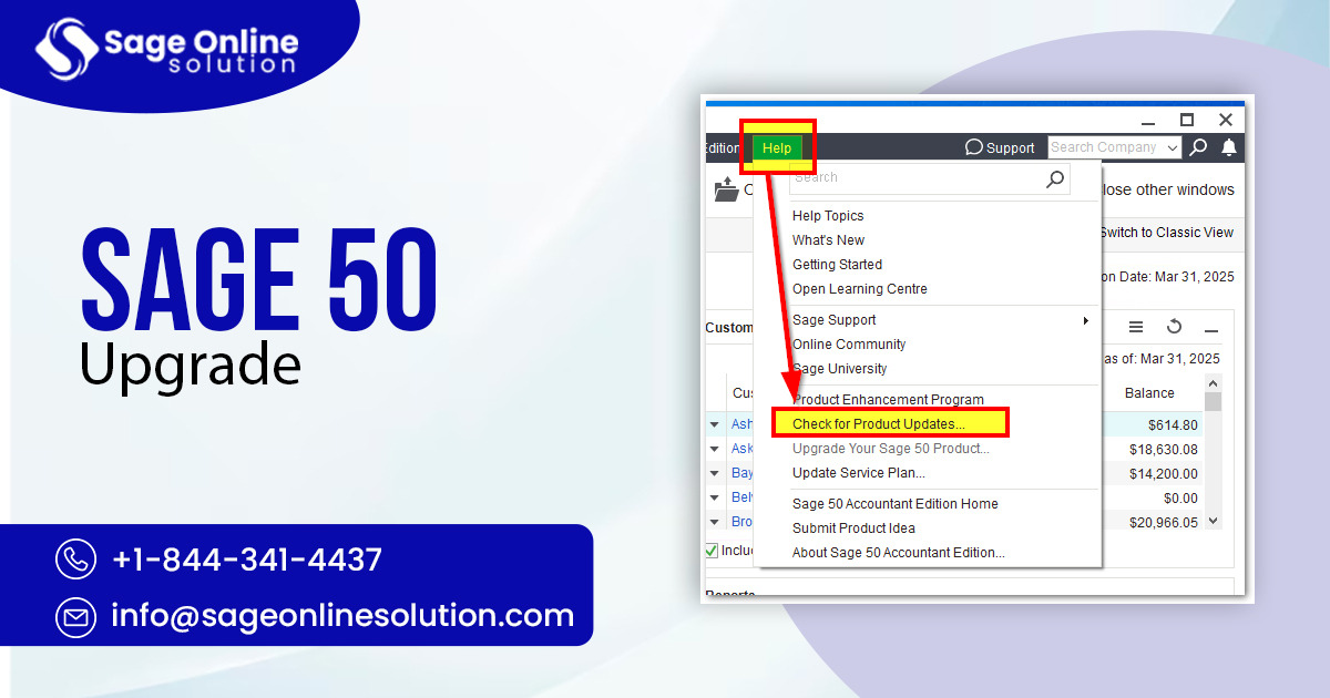 Apply the patch via Services > Updates over your existing install—no uninstall needed. Back up first for Sage 50 Upgrade safety.